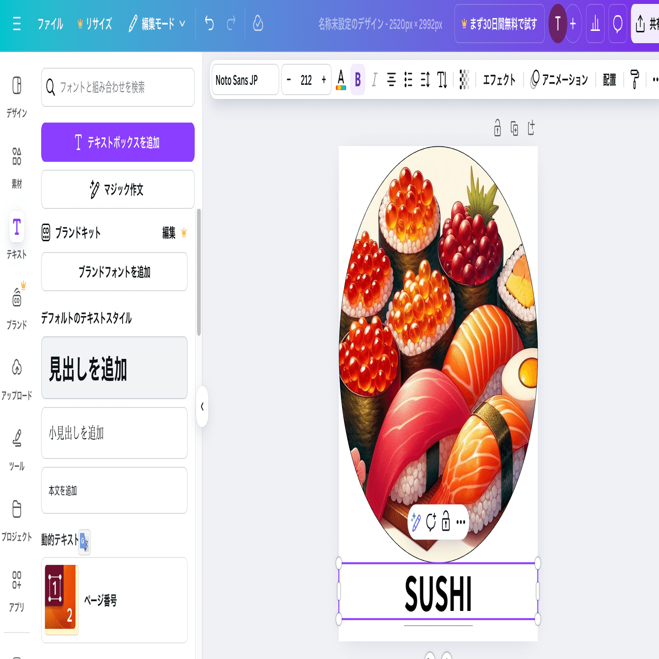 Canvaは、有料プランにすると、背景透過が簡単にできたり、おしゃれな画像や文字が使えたりと、デザインの幅が広がります。が、今回は無料ツールで作業しますので、無料期間は試さないでください。